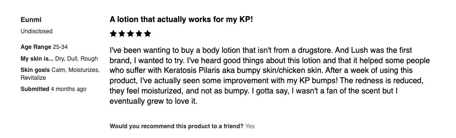 I had been dealing with keratosis pilaris long before I knew what it was. Since I was 12, I had this weird textured skin on the tops of my arms and my legs that annoyed me to say the least. My mom took me to dermatologists who said I had eczema (wrong) and prescribed me medications that as you can imagine, did not work…… AT all. I actually have Google to thank for diagnosing me with keratosis pilaris. I typed in rough prickly skin which led me to the key word chicken skin which led me down the rabbit hole of keratosis pilaris. My keratosis pilaris because I am a darker African American looks like some of the photos posted. I’m currently working on getting rid of the hyper pigmentation that came from me picking at the keratin plugs.